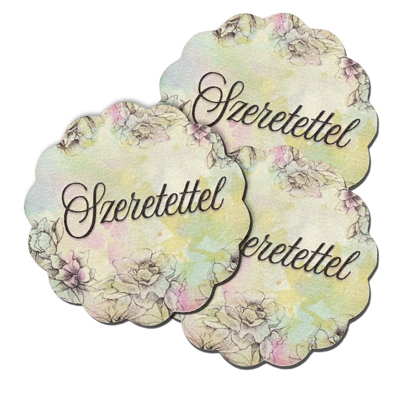 Nyomtatott fa tábla - Virágos tábla - Szeretettel 3db/csom