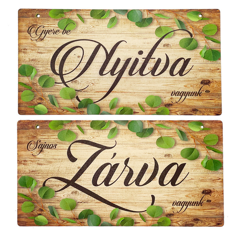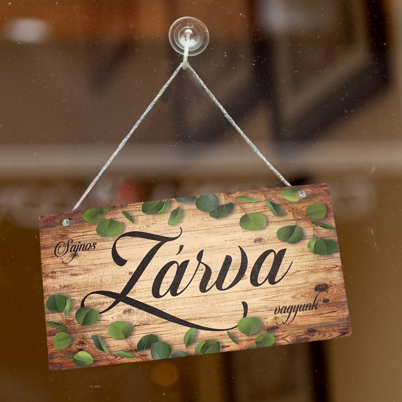 Nyomtatott fa tábla - Zárva-Nyitva - 2 oldalas 24,3x13cm
