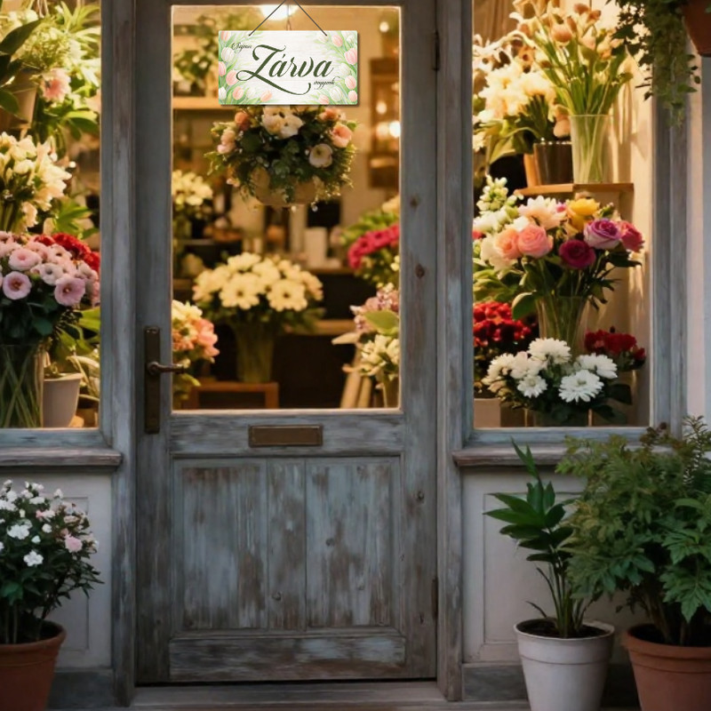 Ez a saját gyártású nyomtatott fa tábla Zárva-Nyitva felirattal és pasztell tulipános mintával készült, így praktikus és dekoratív kiegészítő üzletek, műhelyek vagy szolgáltató helyiségek ajtajára. A kétoldalas kialakítás segítségével egyszerűen jelezhető a nyitvatartás, miközben a pasztell színvilágú tulipános grafika kedves és barátságos megjelenést ad a bejáratnak. A gondosan nyomtatott felület esztétikus, egységes hatást biztosít, a 24,3 x 13 cm-es méret pedig jól látható és könnyen elhelyezhető ajtón, falon vagy kirakatban is.
