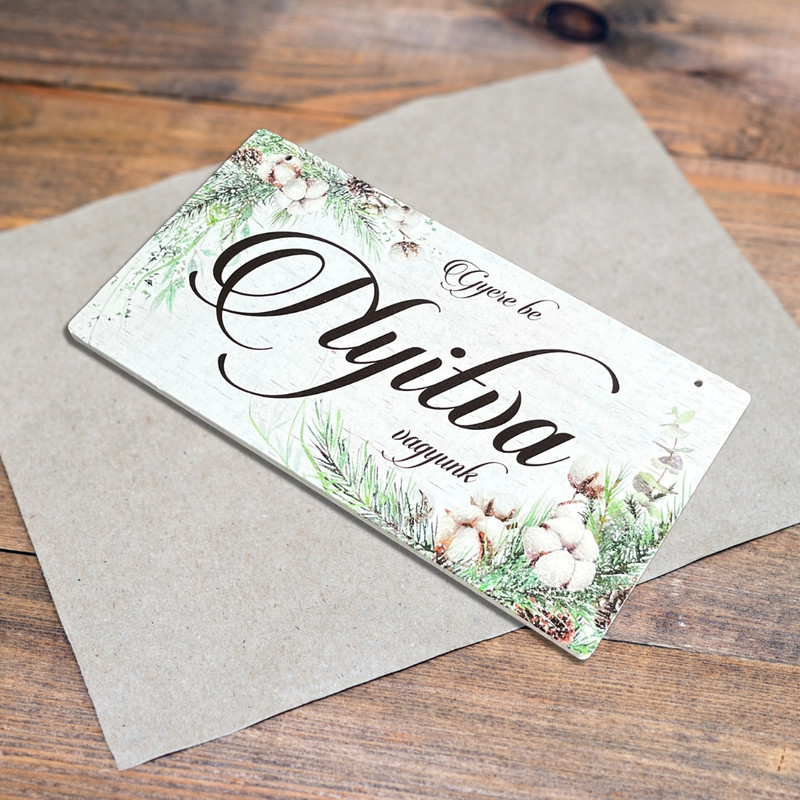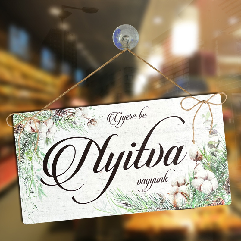 Nyomtatott fa tábla - Zárva-Nyitva tábla - téli gyapotvirággal 24,3x13cm