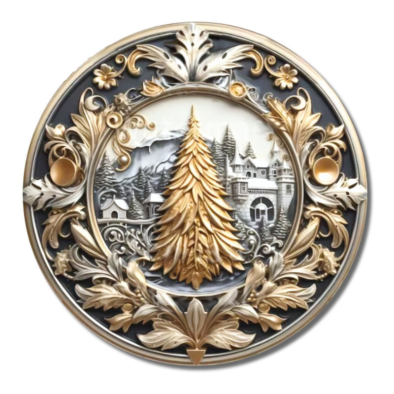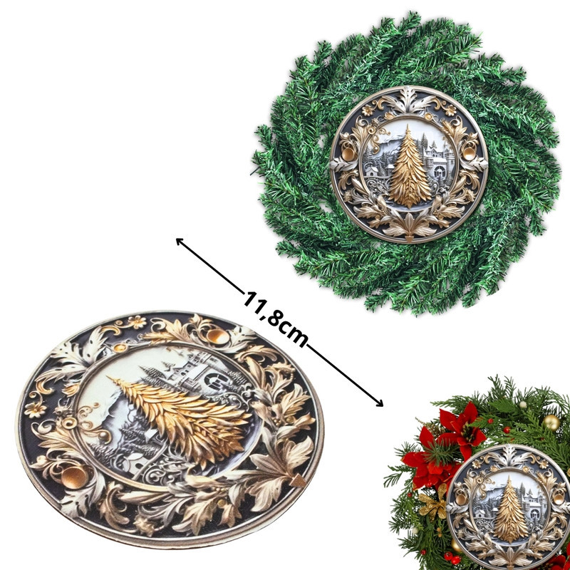 Nyomtatott fa tábla koszorú közép - Arany fenyő 11,8cm