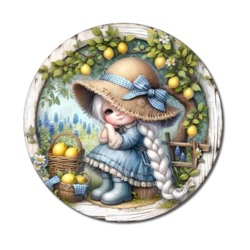 Nyomtatott fa tábla koszorú közép - Citromos lány 11,8cm