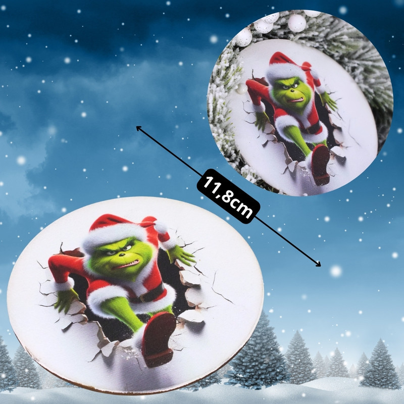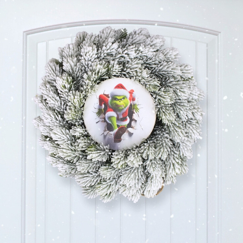 Nyomtatott fa tábla koszorú közép - Faltörő grincs 11,8cm
