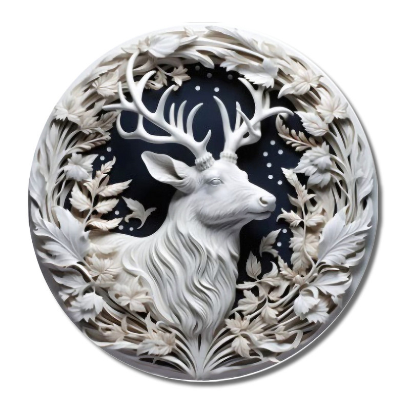 Nyomtatott fa tábla koszorú közép - Fehér szarvas 11,8cm