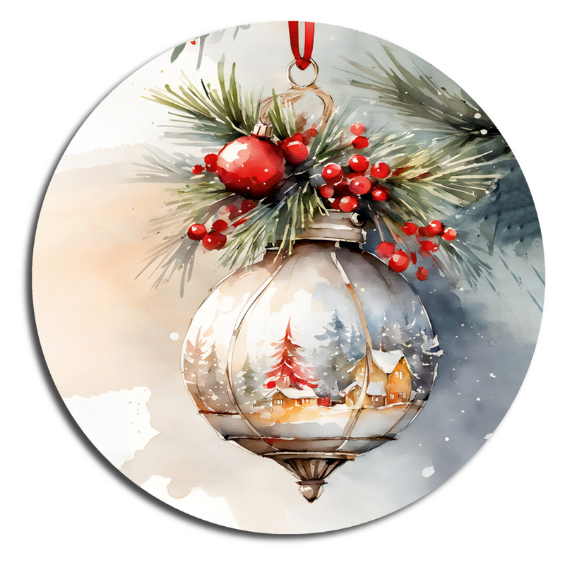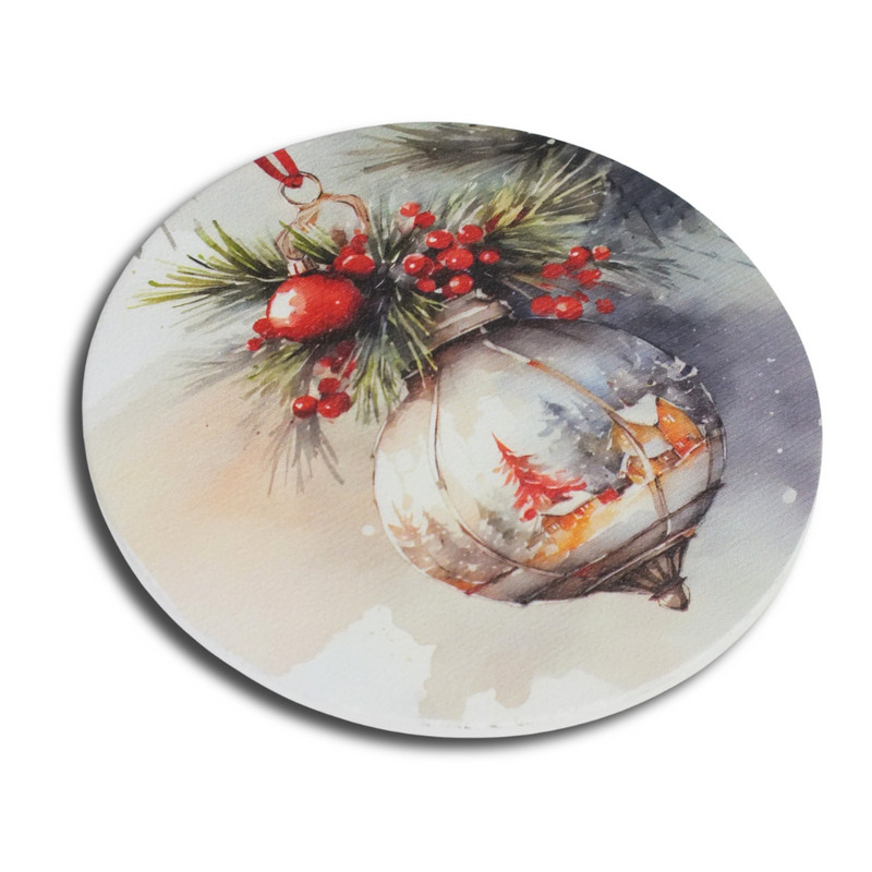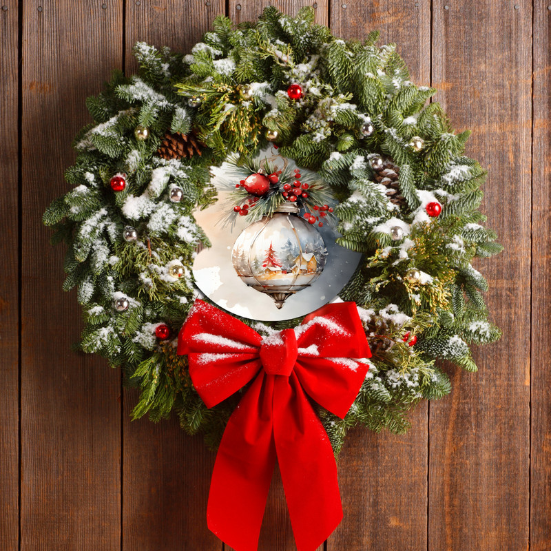 Nyomtatott fa tábla koszorú közép - Karácsonyi piros téma koszorú közép 11,8cm