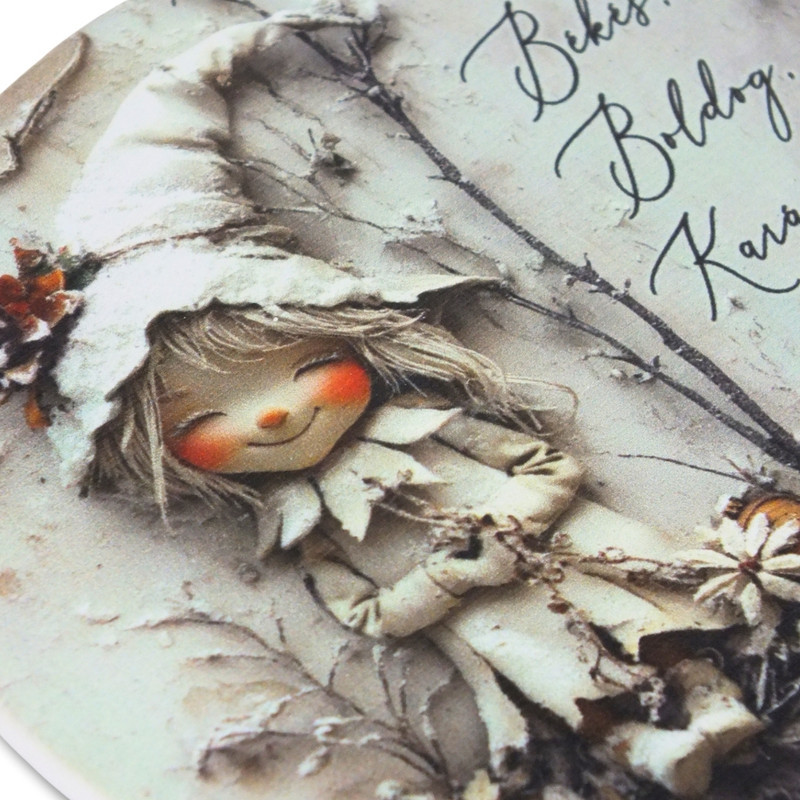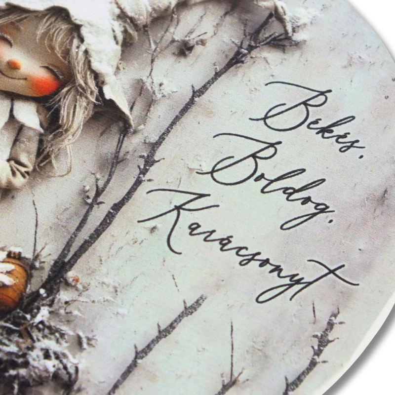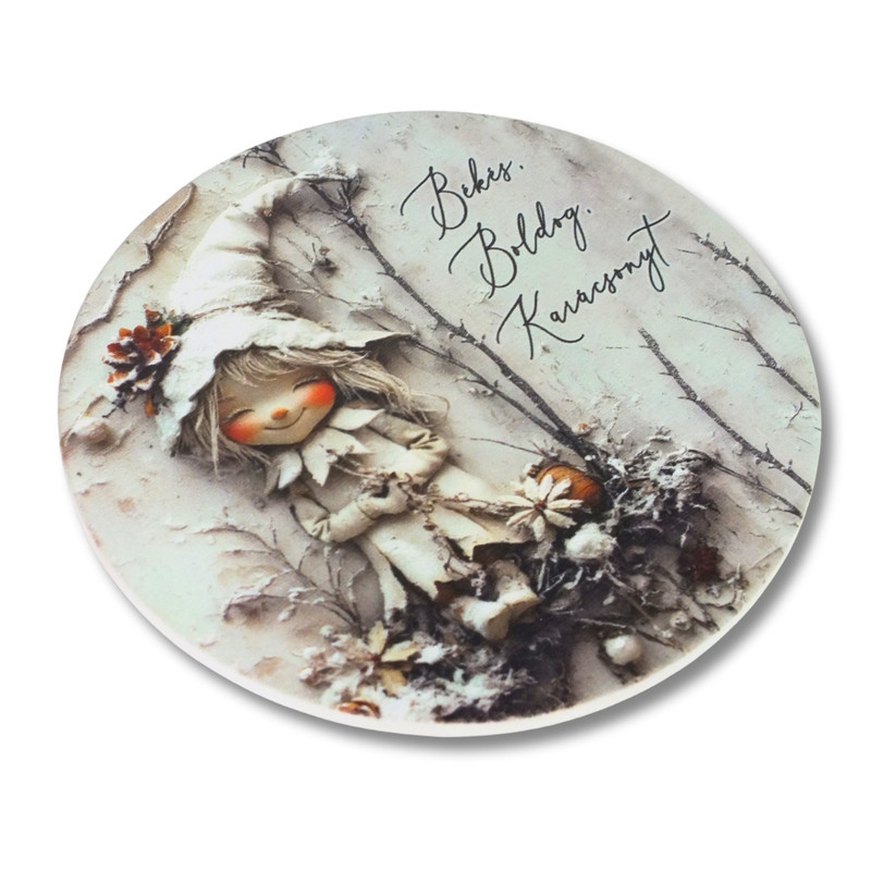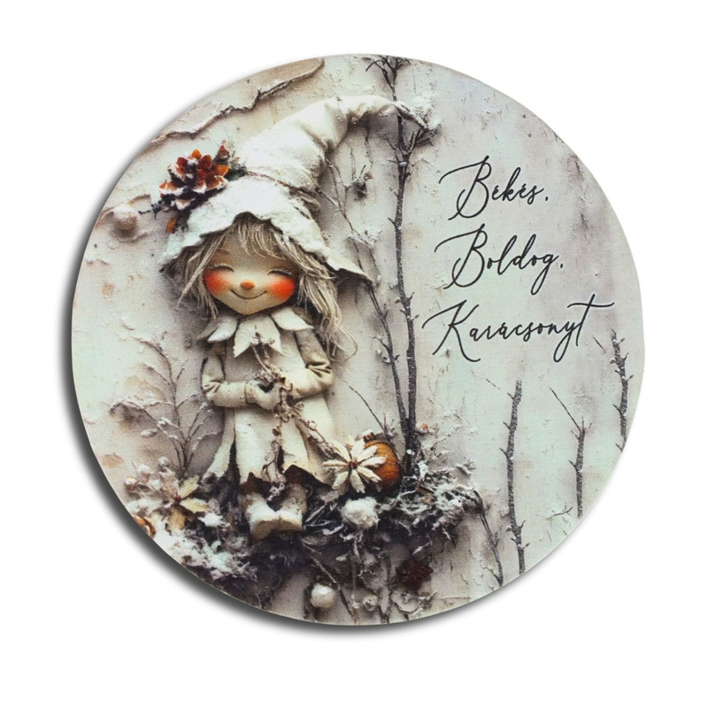 Nyomtatott fa tábla koszorú közép - Vint. fehér téma 11,8cm