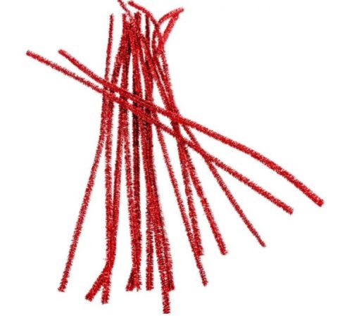 Piros zsenília plüss drót csillámmal – 5 db-os készlet, 30 cm, fényes díszítéssel