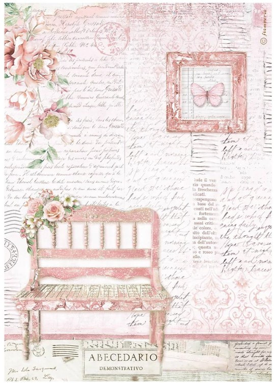 Rizspapír dekupázs technikához A4 - romantikus shabby chic stílus, vintage rózsaszín pad és virágmotívumok