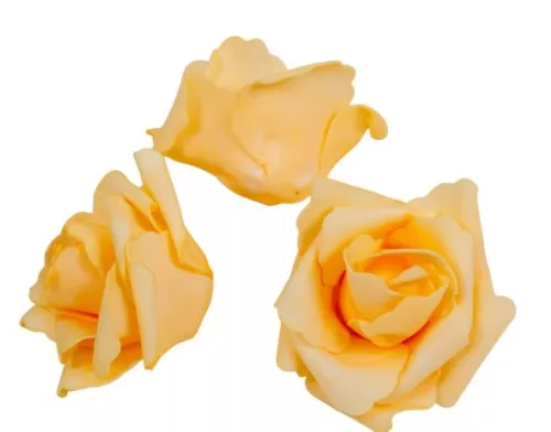 Sárga polihab rózsafej 7 cm – művirág dekorációhoz és kreatív hobbihoz, 3 db/csomag