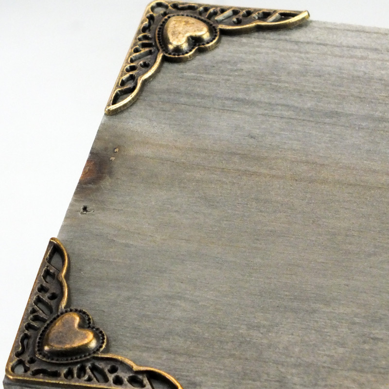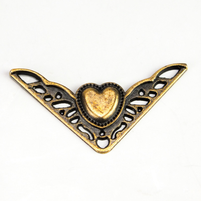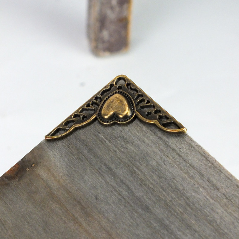 Szívvel díszített fém sarokelem, papír, fa és egyéb dobozokhoz, képkeretekhez és alapokhoz.