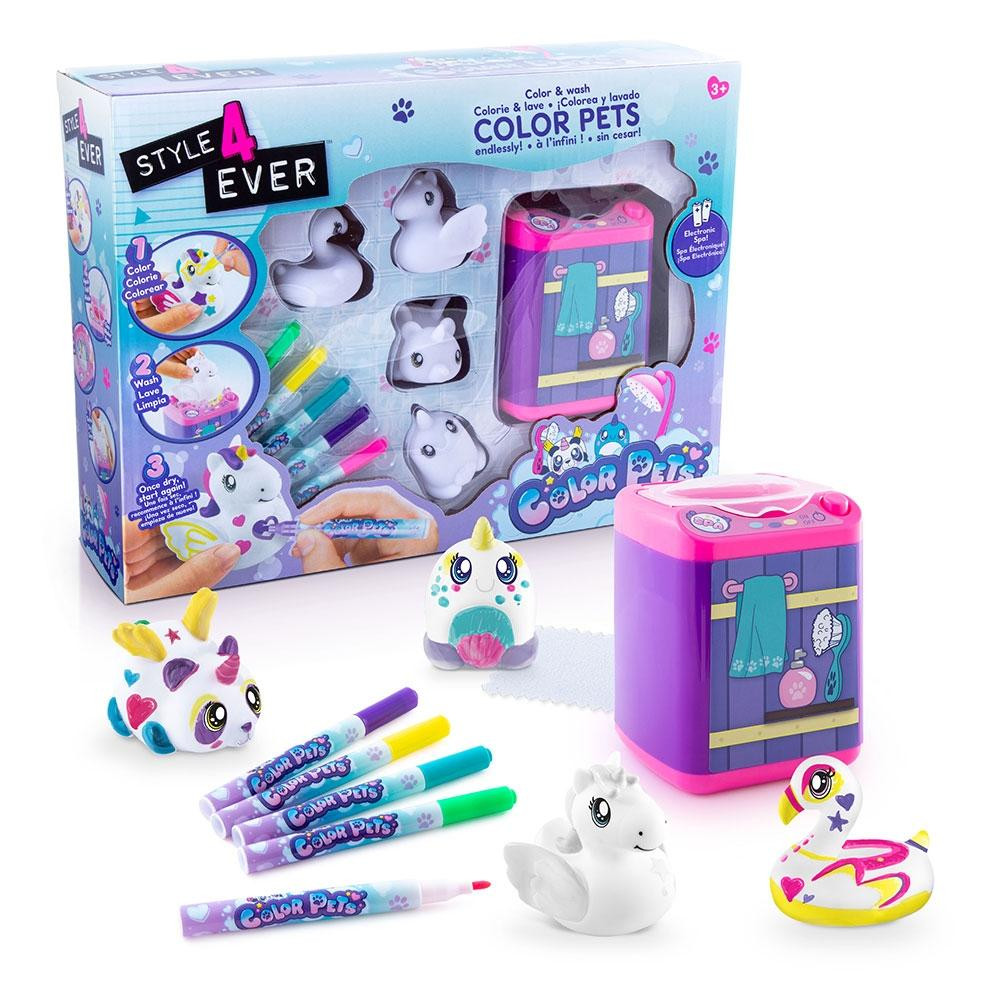 És a legmókásabb rész? Ha új ötlet jut eszükbe, az állatok újra kimoshatók és kiszínezhetők! A figurák moshatók és a mellékelt mini játékmosógéppel tisztíthatók, így ismét fehérek lesznek és készen állnak egy új alkotásra.