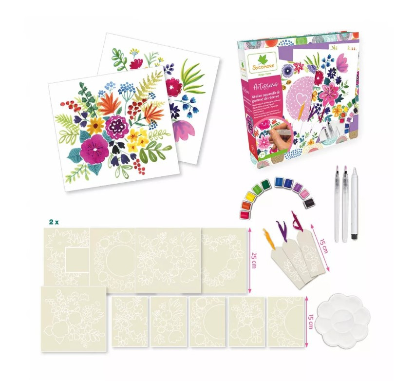 Próbáld ki a Sycomore Artissimo Akvarellfestő készletet, melybe maszkoló filc is került, ismerd meg a technológiát, és fedezd fel, milyen csodálatos képek alkotására vagy képes! A szett egyszerű, de annál látványosabb formákkal operál. A levelek, szirmok és virágok motívumait a népművészetek is előszeretettel használják, hiszen könnyen begyakorolhatók, miközben csodálatos képek készíthetők velük, akár akvarellel is! Használd a mintákat, hogy elsajátítsd az alapokat. Fali képeket, képeslapokat, könyvjelzőket is készíthetsz ezzel a csomaggal.