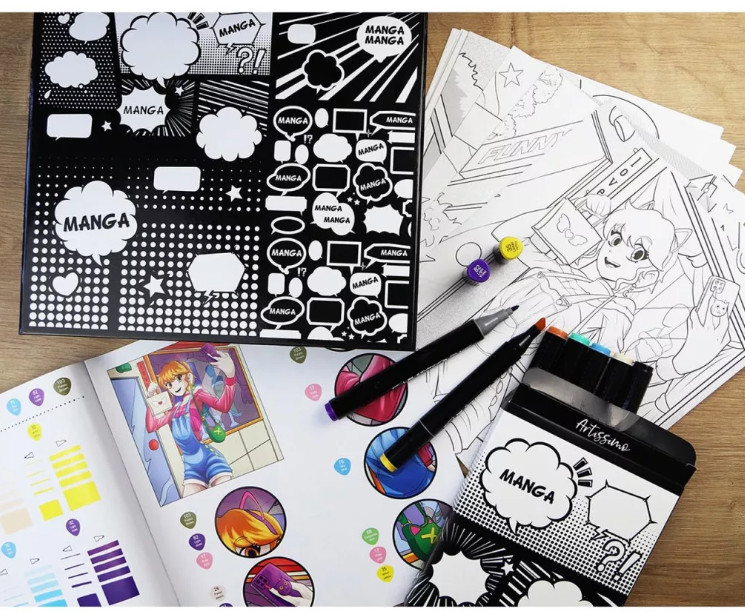 A képregények, az animék és a mangák iránt szenvedélyesen érdeklődő gyerekek számára ez a színezőkészlet lehetőséget kínál arra, hogy dinamikus jeleneteket és kifejező karaktereket keltsenek életre. A mellékelt sablonok és útmutató bemutatja, hogyan lehet a részleteket színezni és kiemelni érdekes vizuális effektek létrehozásához. Ebben a készletben a gyerekek hősnőkkel színezhetik ki a manga illusztrációkat, a mellékelt filctollak segítségével pedig kísérletezhetnek a színkombinációkkal és stílusokkal.