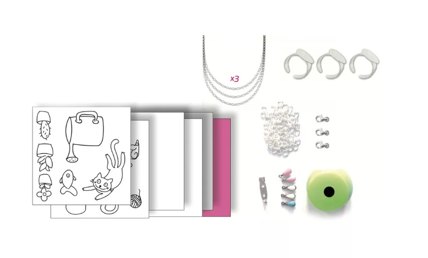 Alkosson egyedi ékszereket a kreatív készlet anyagaival! A tevékenység ötvözi a készséget és a képzeletet, lehetőséget adva a gyerekeknek arra, hogy saját rajzaikat valódi kiegészítőkké alakítsák.
