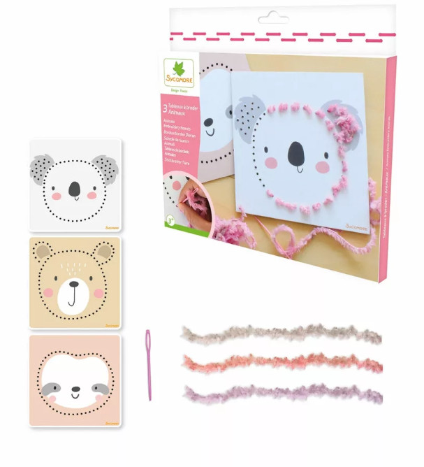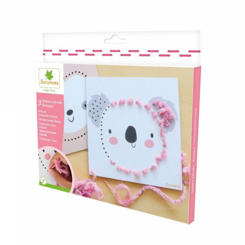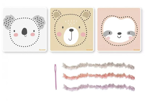 A Sycomore Állatok a csipkéből készlet egy rendkívül aranyos kreatív játék, amely még a legkisebbek számára is alkalmas. Varrd körbe az előre kilyukasztott képeket, és aranyos állatarcok tűnnek ki a háttérből.