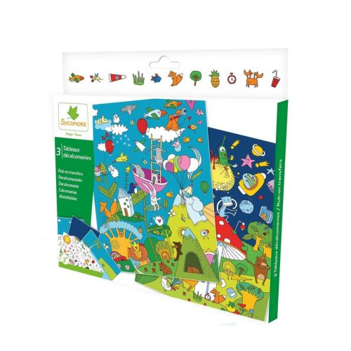 Sycomore kreatív matricakészlet gyerekeknek, illusztrált táblákkal és több mint 100 matricával, ideális dekorációhoz és a kreativitás fejlesztéséhez.