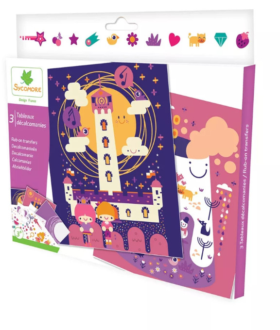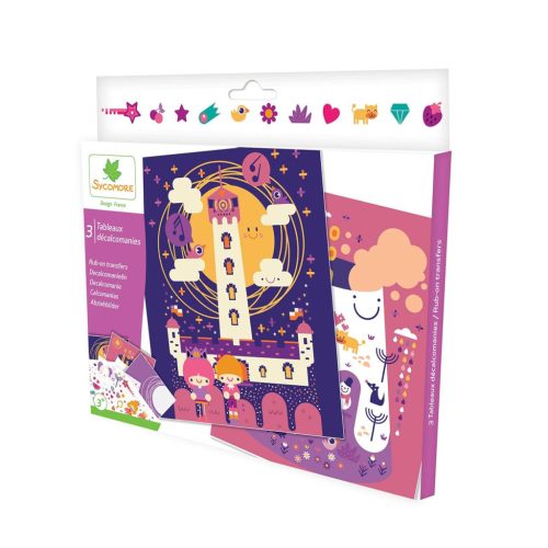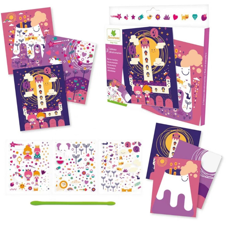 A Sycomore kreatív készlet dörzsölős transzfermatricákkal lehetőséget ad a gyerekeknek, hogy történet ihlette képeket alkossanak a dörzsölős transzfer technikával. A gyerekek elhelyezik a matricát a táblán, és a mellékelt eszköz segítségével könnyen átviszik, a kép pedig varázslatosan tapad a háttérhez.