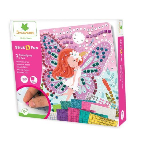A Sycomore Stick’n Fun – Tündérek készlettel a gyerekek varázslatos mozaikfestményeket készíthetnek, repülő tündérekkel díszítve képeket, különböző színű és formájú öntapadó mozaikcseppek segítségével. A tevékenység megmutatja nekik, hogyan tudnak apró elemek gondosan elhelyezve egy egyszerű képet látványos alkotássá varázsolni.