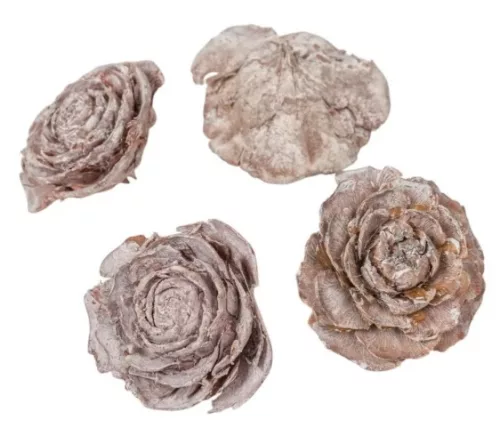 Szárított cédrusrózsa, fehér, dérhatású – 3–5 cm, 4 db/csomag
