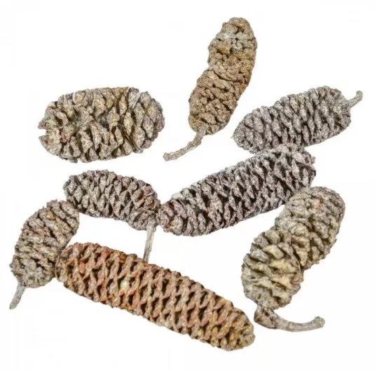 A szárított dísztobozok "Indian Alder" ideális természetes elemek virágdíszekhez és szezonális dekorációkhoz. Minden csomag 20 darab szárított mini tobozt tartalmaz, 2 és 4 cm közötti méretben.