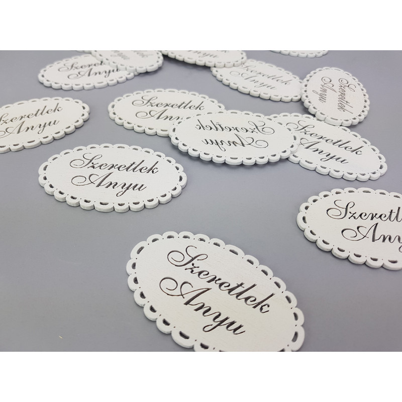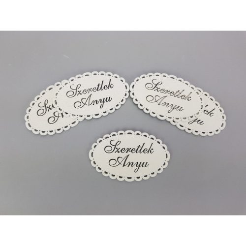 "Szeretlek Anyu" csipkés ovál tábla fehér 5db/csomag