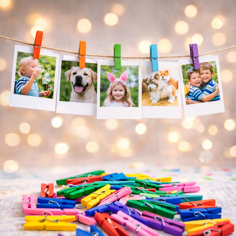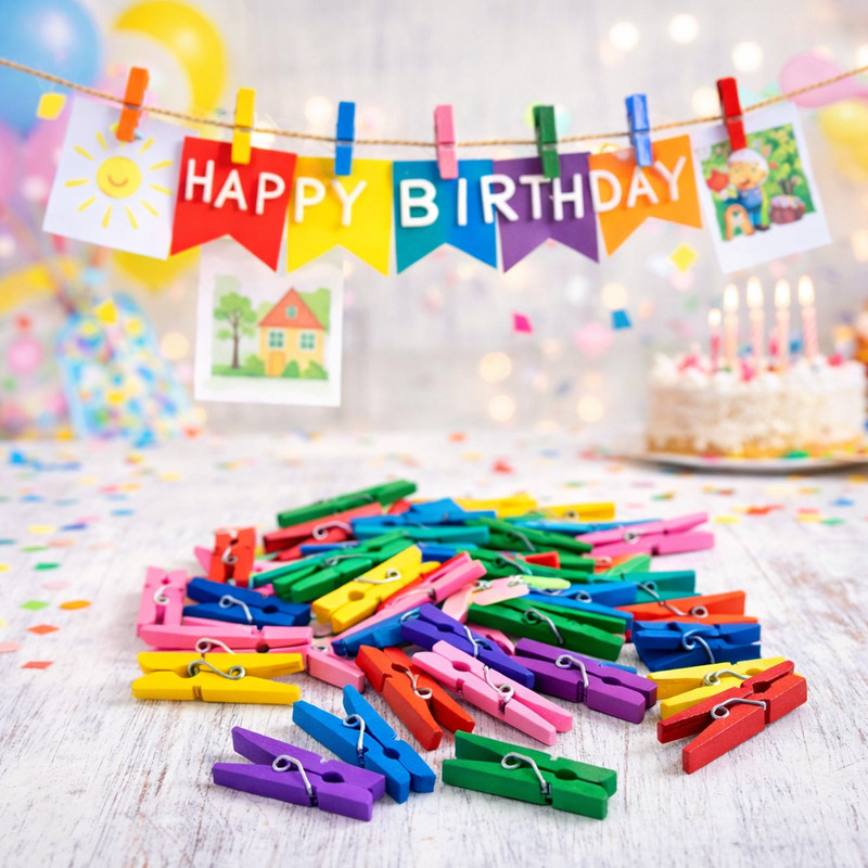 A színes facsipeszek vidám és sokoldalúan használható dekorációs kiegészítők. A 3 cm-es méret praktikus, könnyen kezelhető, így ideális különféle kreatív és DIY projektekhez. Felhasználhatók díszítésekhez, ajándékcsomagoláshoz, fotók rögzítéséhez vagy egyedi dekorációk készítéséhez. A vegyes színek játékos megjelenést adnak, könnyen kombinálhatók más dekorációs elemekkel. Az 50 darabos csomag elegendő mennyiséget biztosít nagyobb kreatív munkákhoz is. Természetes fa anyagának köszönhetően tartós és sokoldalú megoldást kínál.