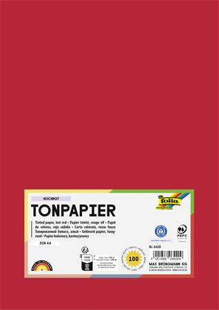Színes papír, A4, 130 g, 100 lap, FOLIA, élénkvörös