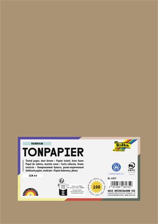 Színes papír, A4, 130 g, 100 lap, FOLIA, őzbarna