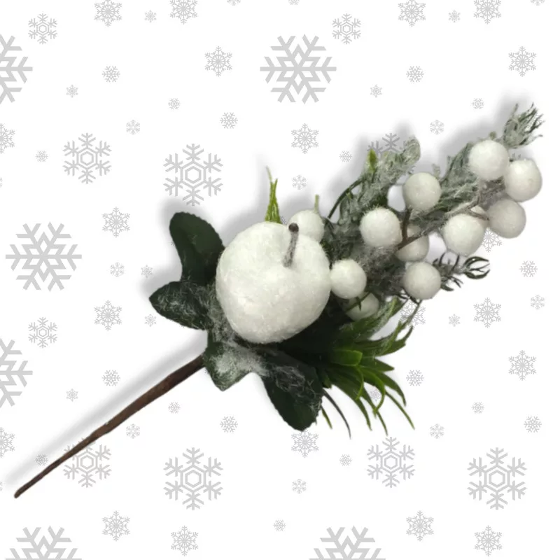 A téli pick havas almával és bogyókkal a hideg évszak meghitt hangulatát idézi, természetes hatású, mégis tartós formában. Élethű, finom műhóval borított elemei gyönyörű kiegészítői lehetnek ünnepi kompozícióknak, ajtódíszeknek, koszorúknak vagy asztali dekorációknak.