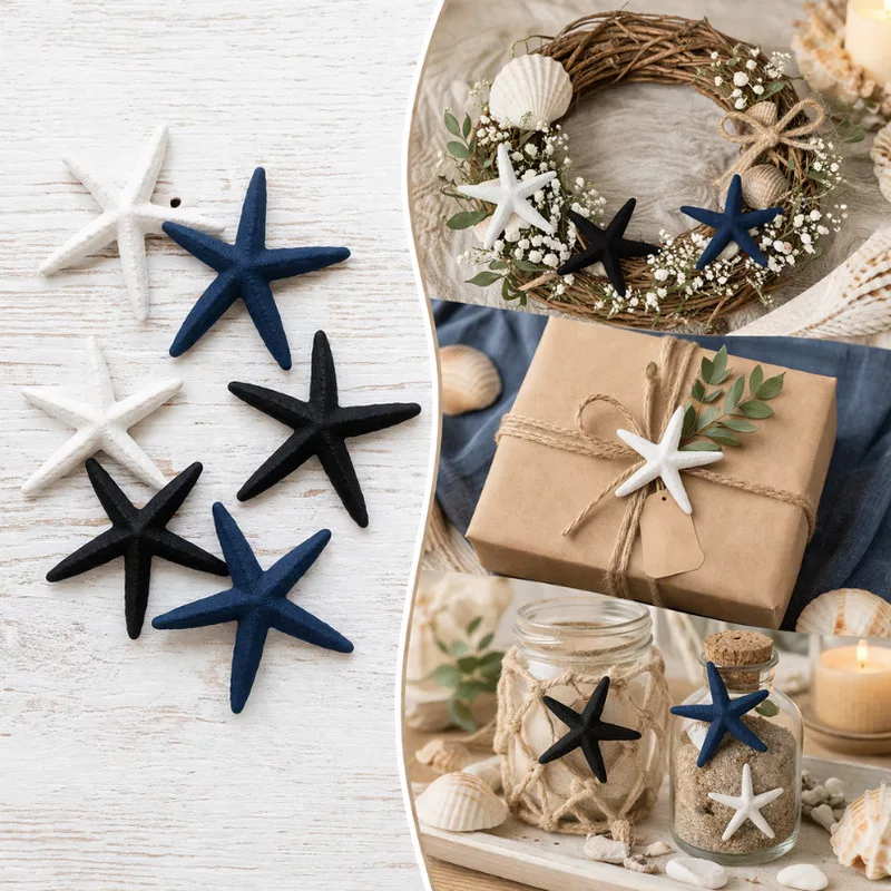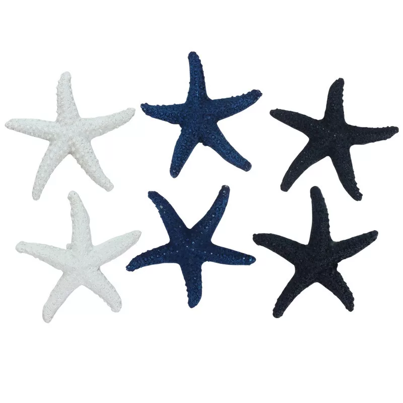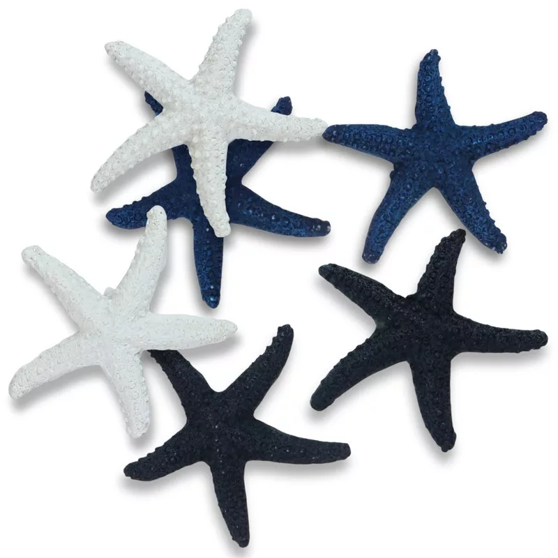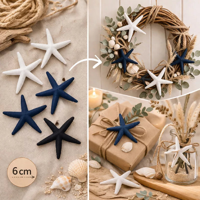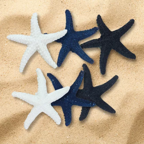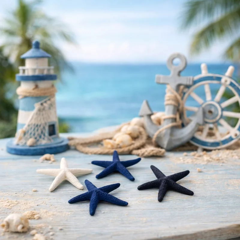 A nyár hangulatát megidéző tengeri csillag dekorációk. A fehér-matrózkék színek felébresztik a díszben szunnyadó eleganciát és stílusos megjelenést kölcsönöz a kompozícióidnak. Kreatív alkotók számára kiváló választás, a tengerpart szerelmesei számára pedig egyenesen kihagyhatatlan.
