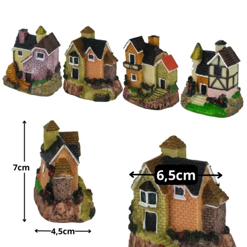 Varázsold el otthonod vagy kerted ezzel a négy darabos mini polirezin ház szettel! Minden házikó ~6,5 cm nagyságú, részletes kidolgozottsággal. Ezek a bájos mini házak tökéletesek tündérkertekhez, asztaldíszekhez, vagy diorámákhoz. Használhatod őket kreatív DIY projektekhez, miniatűr falvak, makettek, vagy karácsonyi dekorációk készítéséhez. Engedd szabadjára fantáziád és alkoss egyedi, varázslatos világokat ezekkel az elbűvölő miniatűr házikókkal!