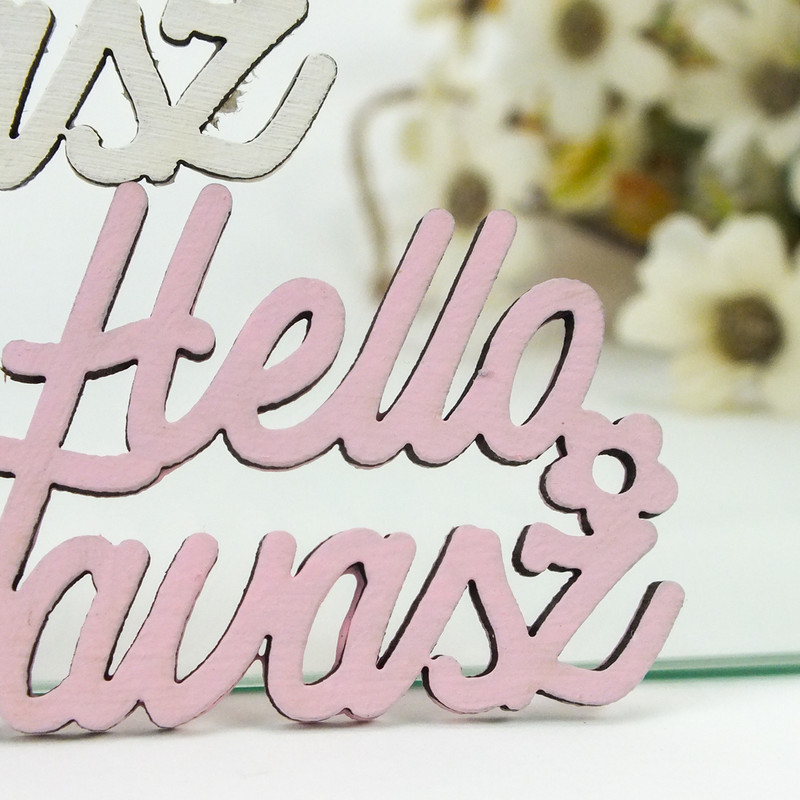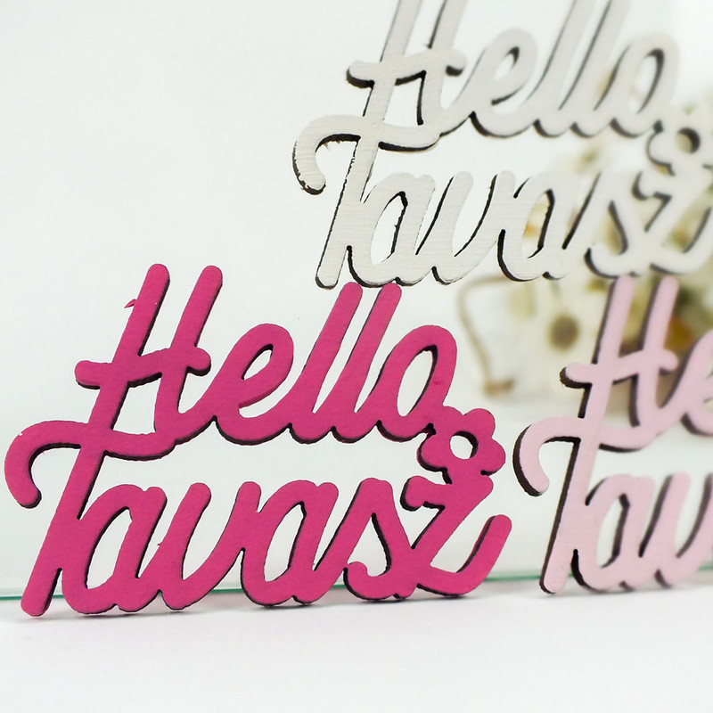 Díszítsd szezonális dekorációidat "Hello tavasz" felirattal és dekorálj vele falidíszeket, ajtókopogtatókat, asztalidíszeket, vagy egyéb egyedi készítményeket.