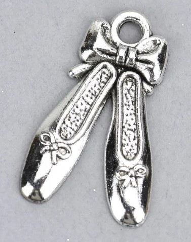 Ez az ezüst bevonatú balerina cipő fém medál finom és nőies. 2-3 cm méretű, ideális tánc- és művészeti ihletésű ékszerekhez. Tökéletes nyakláncokhoz, karkötőkhöz vagy személyre szabott ékszerekhez, ez a minőségi fémből készült medál barkácsoláshoz is alkalmas.
