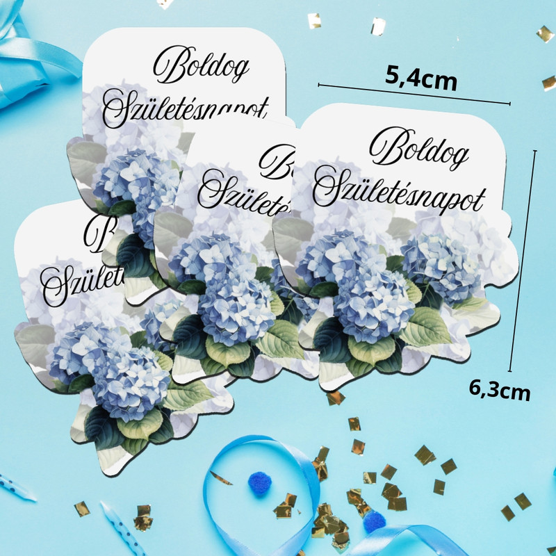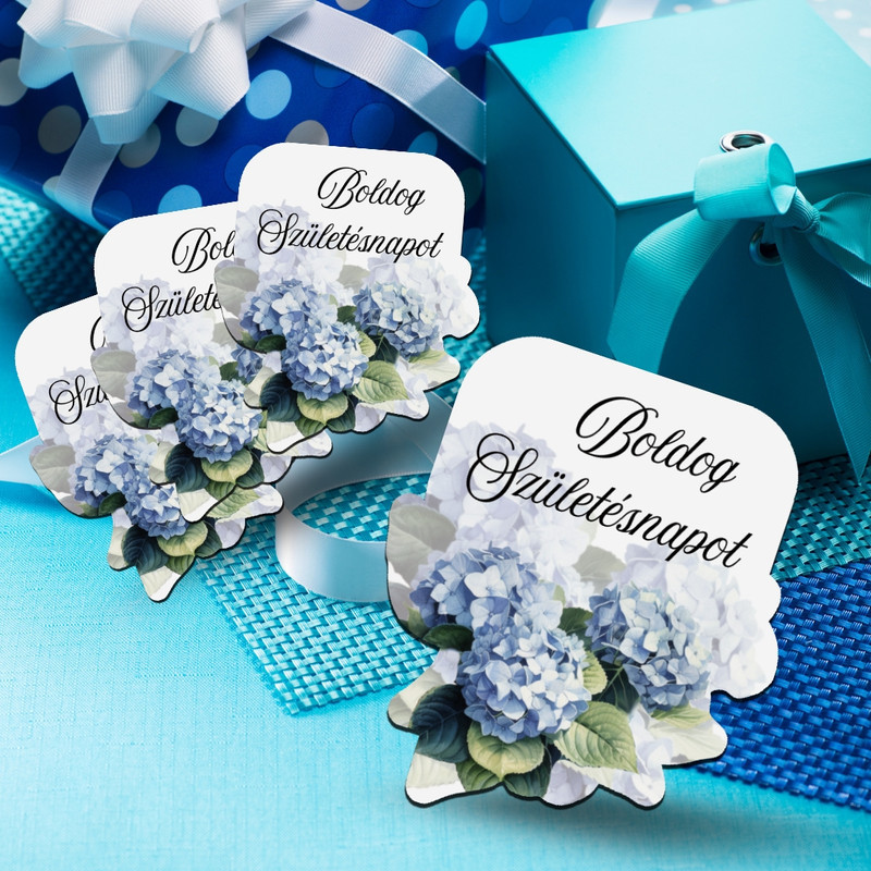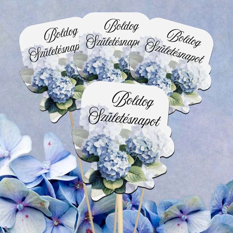 Nyomtatott dekorkarton - Boldog születésnapot virágos tábla - kék 4db/csomag