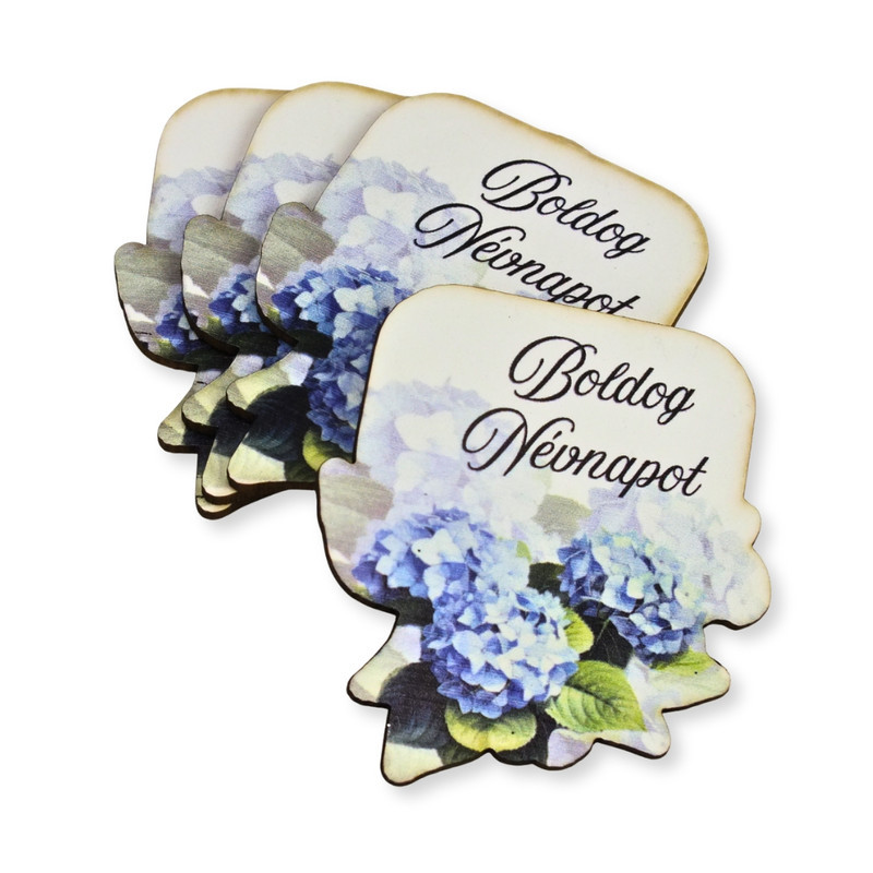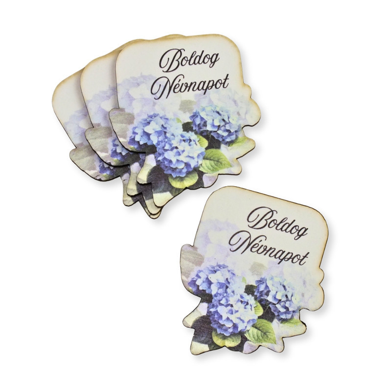 Nyomtatott dekorkarton - Boldog névnapot virágos tábla - kék 4db/csomag