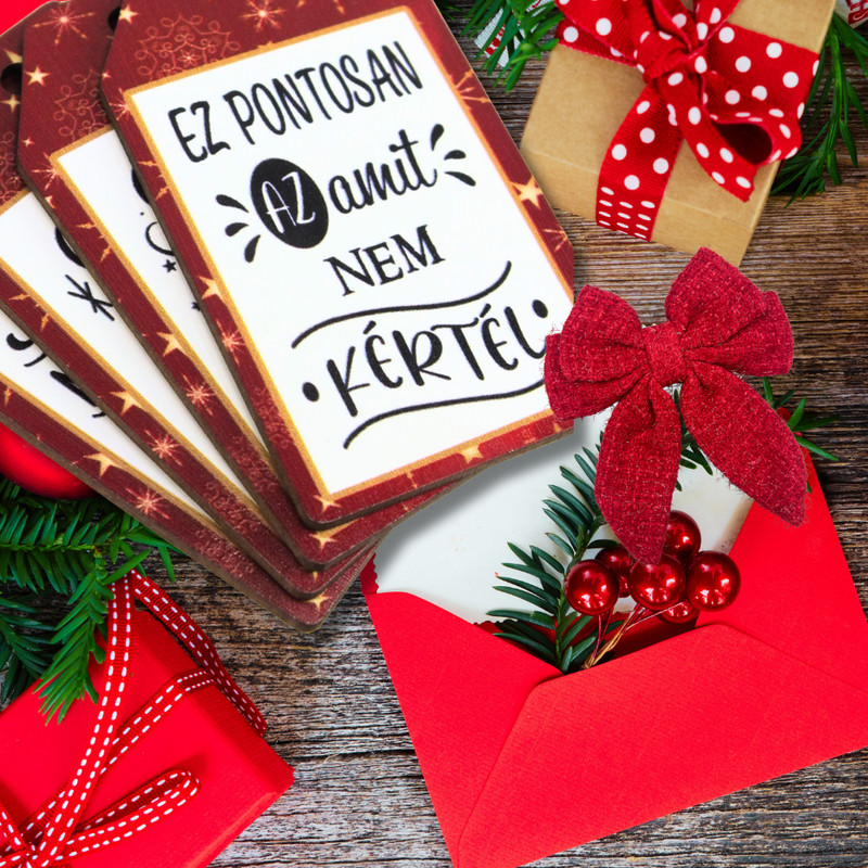 Nyomtatott dekorkarton - Ajándék kísérő táblák humoros 4db/csomag