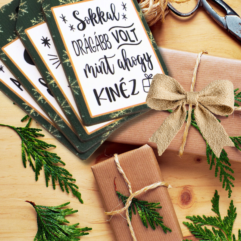 Nyomtatott dekorkarton - Ajándék kísérő táblák humoros 4db/csomag