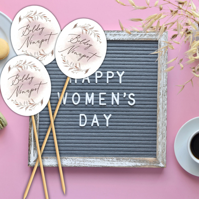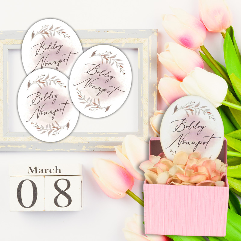 Ez a nyomtatott dekorkartonból készült nőnapi ovál tábla pasztell rózsaszín színével és diszkrét virágmotívumával finom, ünnepi megjelenést biztosít. Saját gyártású dekoráció, amely letisztult formájának köszönhetően könnyedén illeszkedik nőnapi dekorációkba. A 3 darabos kiszerelés ideális választás kirakatokba, üzletterekbe, valamint virágcsokrok és ajándékok kiegészítőjeként, ahol visszafogottan emeli ki az alkalom hangulatát. Tökéletes megoldás, ha igényes, mégis egyszerű nőnapi dekorációt keresel.