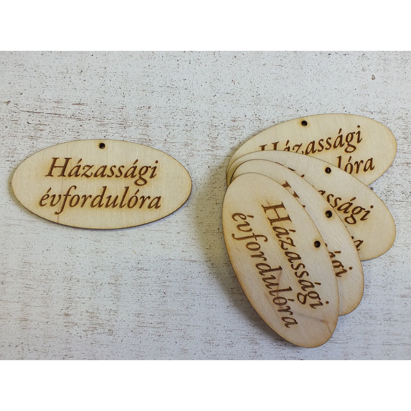 Natúr fa - "Házassági évfordulóra" gravírozott ovál tábla 4x8cm 5db/csomag
