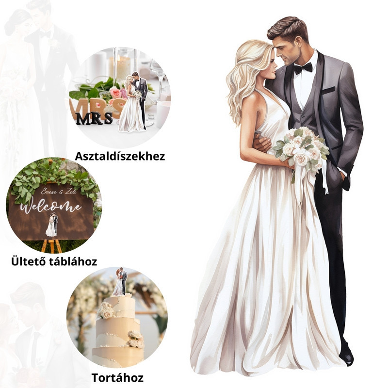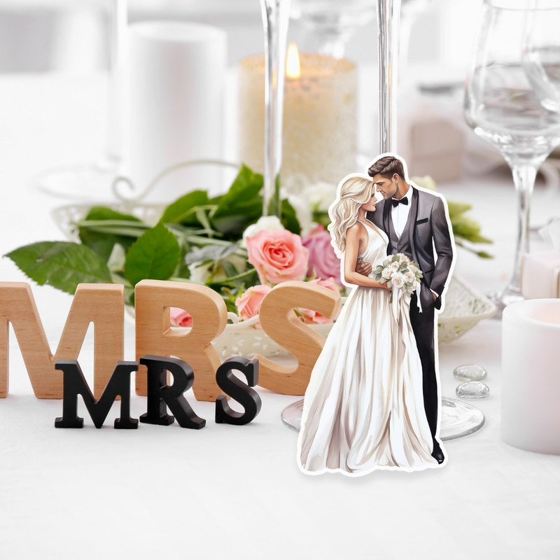 Gyönyörű házaspárt ábrázoló tábla. Ezek a tábla a tökéletes módot kínálja, hogy egy kis személyes szépséggel fűszerezzük meg a dekorációkat a nagy napon.