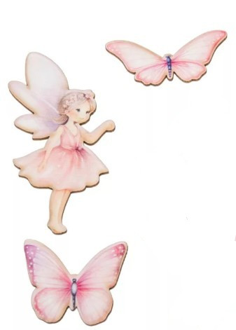 Dekoratív figurakészlet tündér két pillangóval – UV nyomtatott karton, 6–10 cm (3 db)